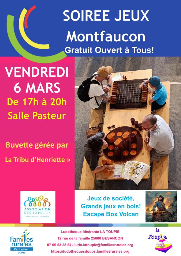 Le vendredi 6 mars, l'association des familles de Montfaucon fait appel à la ludothèque pour sa traditionnelle soirée jeux du mois de mars.